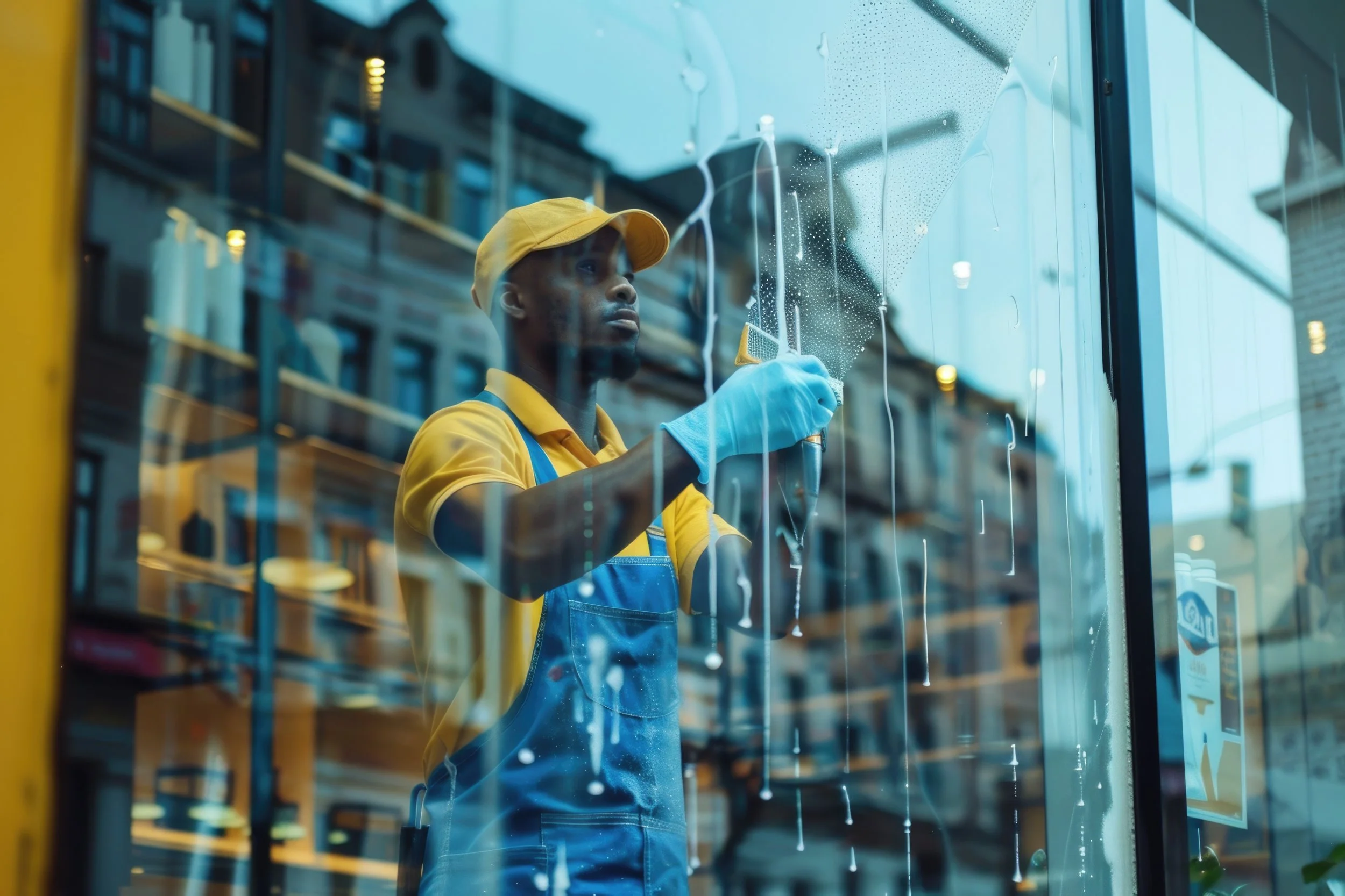 Cleaning of all interior windows including frames and sills by hand wash and squeegee.